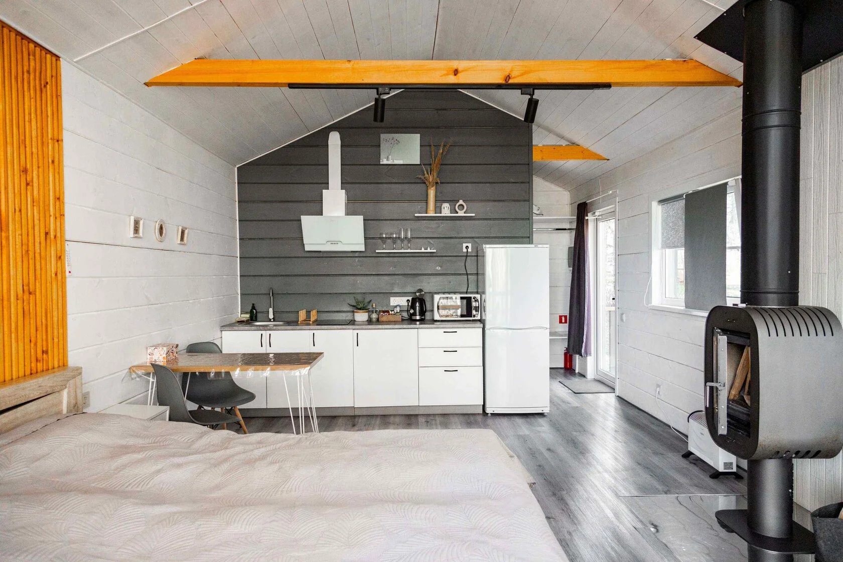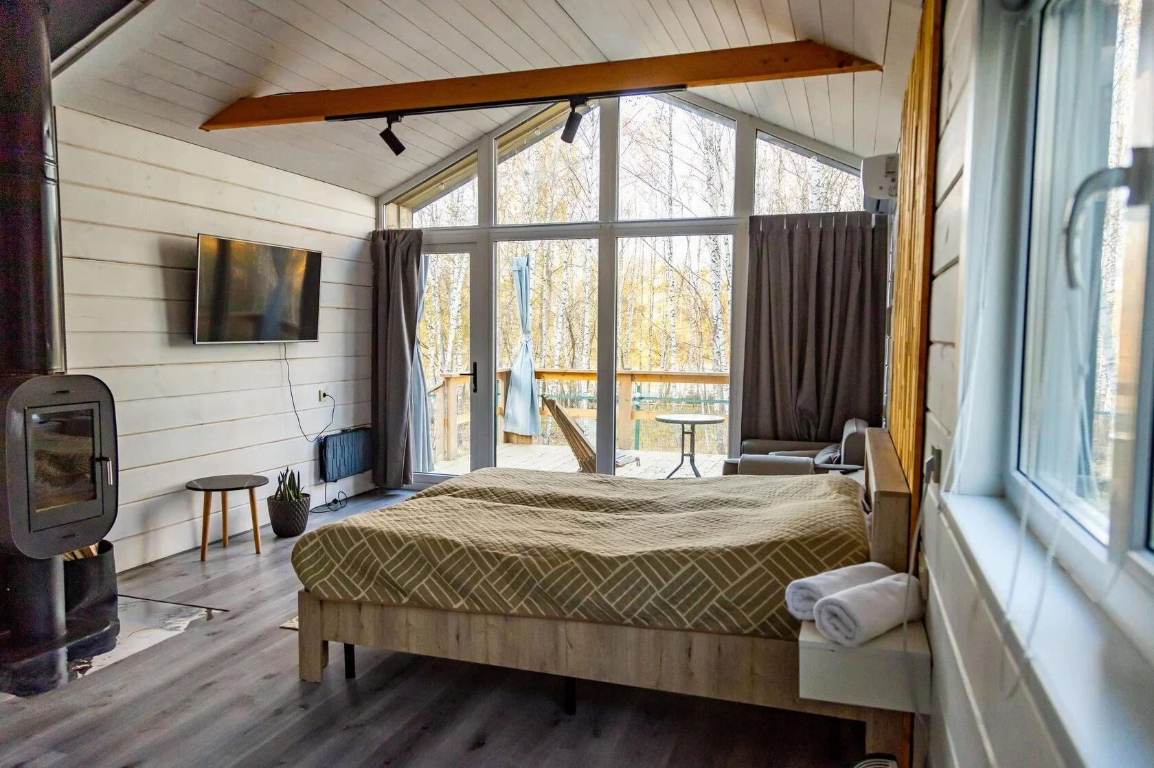 - Оборудование: камин, кондиционер, микроволновая печь, мини-холодильник, набор посуды, плита электрическая, телевизор ЖК, чайный набор посуды, электрочайник